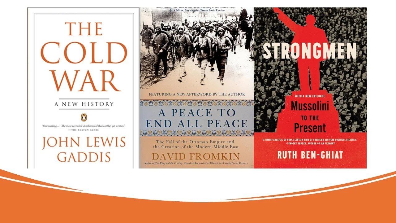 David Fromkin's The Peace to End All Peace adds another layer. The borders drawn across the Middle East after World War I were the work of British and French diplomats, in support of their colonial priorities, not based on any knowledge of the cultural and religious geography they were carving up. Those borders did not create all the tensions that exist today, but they established conditions that made stable governance exceptionally difficult. Ruth Ben-Ghiat traced one consequence in Strongmen: Mussolini to the Present was the way those conditions became incubators for authoritarian rule across the region.